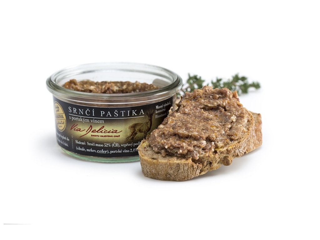 Prémiová srnčí paštika s portským vínem podle původních receptur hospodyně z roku 1925.